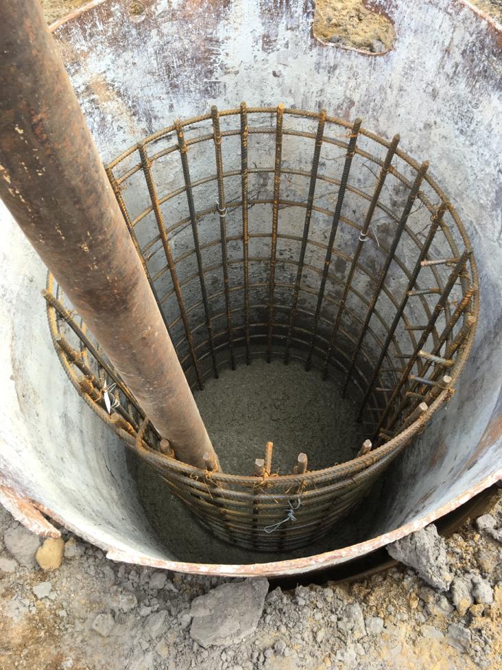 The drilled shaft of a caisson normally ranges from 24” (610mm) to 120” (3048mm). Depending on the loading specifications, caissons may be reinforced with steel re-bar cages or nonreinforced. After cleaning the bottom of the caisson and having it inspected by a third party it is filled with concrete and ready for the next phase of your project.