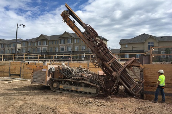 Our track mounted drill rigs are strong, powerful machines capable of drilling large diameter shafts/caissons. The torque and crowd available on these rigs provide the capacity to drill in difficult conditions including hard rock and boulders. Tried and tested, these rigs are ideal for many shoring and caisson jobs throughout Ontario.